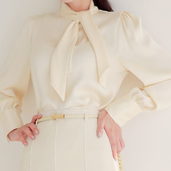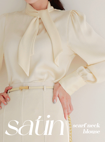サテン トット エンボス加工 スカーフネック ブラウス