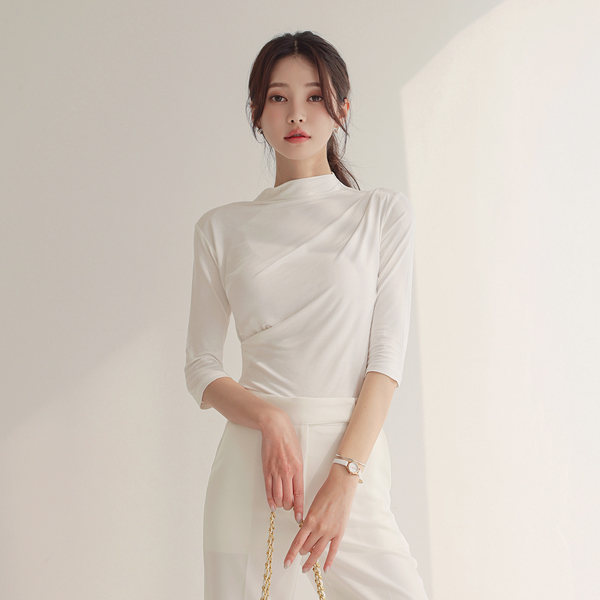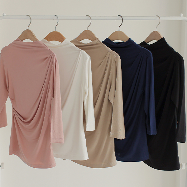 半タートルネック·ネックライン ドレープ シャーリング テンション ティーシャツ