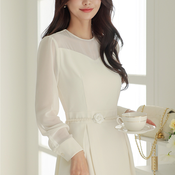キャメリア 花柄 真珠 ベルト