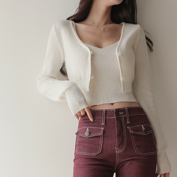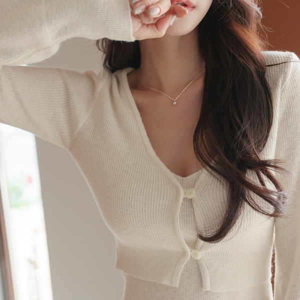 Pony はち ブイネック クロップド ニット カーディガン