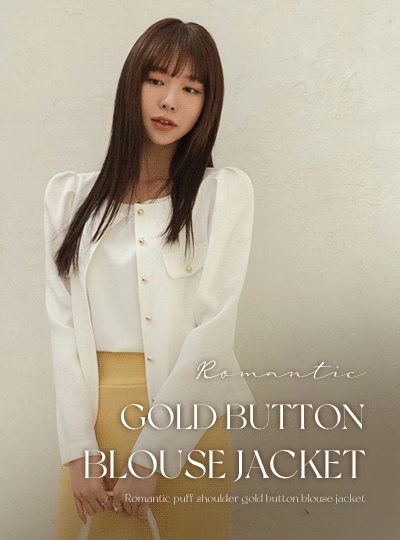 ロマンチック パフ ショルダー ゴールド ボタン ブラウス ジャケット