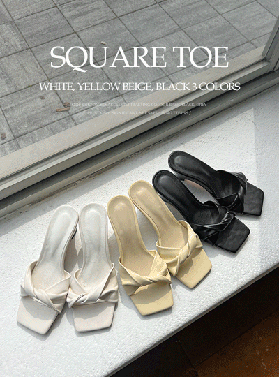 縒り スクエアトー スリッパ ミュール ヒール