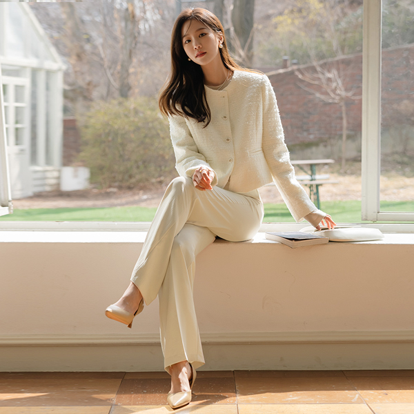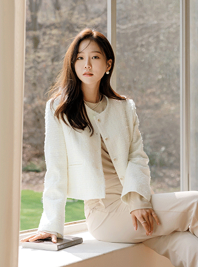 シュガー カラー モダン ツイード ジャケット