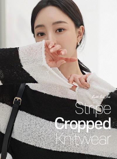 ブークレ ボートネック ストライプ クロップド ニット