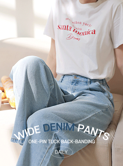 ピンタック 後面バンド ワイド デニム パンツ