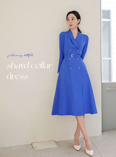 ショールカラー ゴールドわ ベルティード ソフト ワンピース