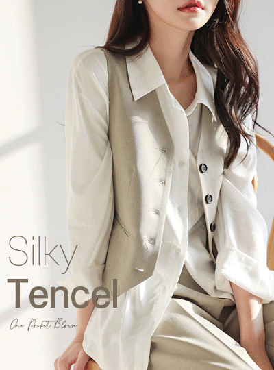 シルキー テンセル ワンポケット ブラウス