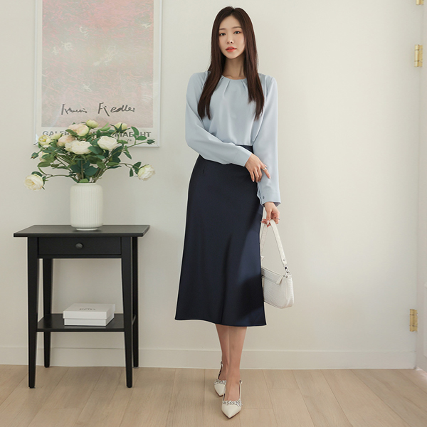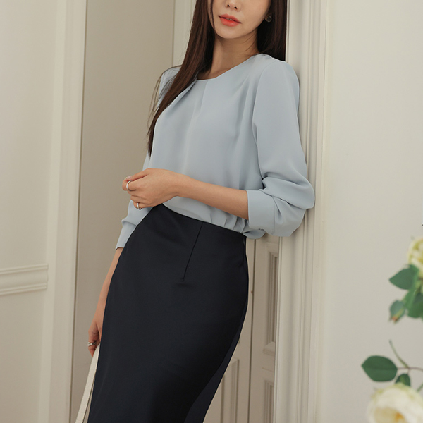 [O:neul] 柔らかな肌のように 柔らかい, クリーミー 게더 シャーリング ブラウス