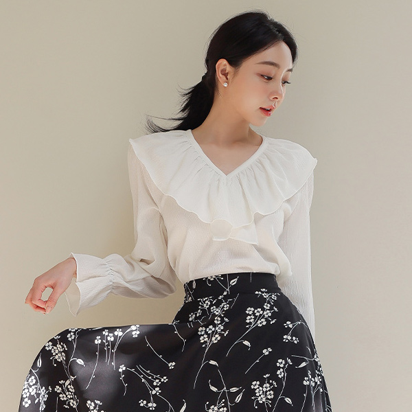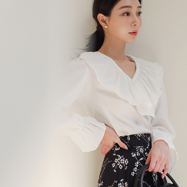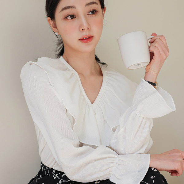 リンクル ブイネック フリル ブラウス