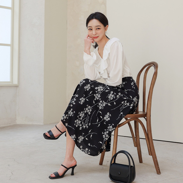 リンクル ブイネック フリル ブラウス