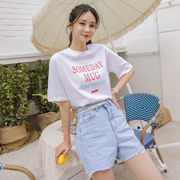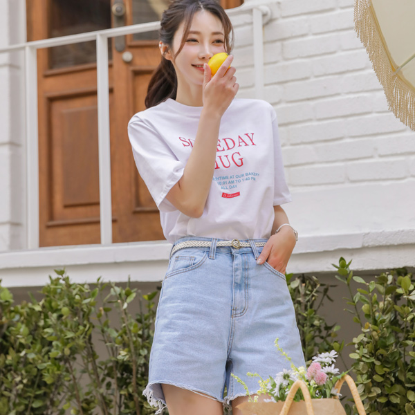 ダメージ 着心地のいい カッティング ハイウエスト short length デニム パンツ