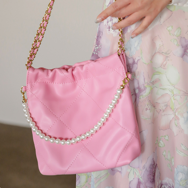 真珠&ゴールド チェーン キルティング ショルダー