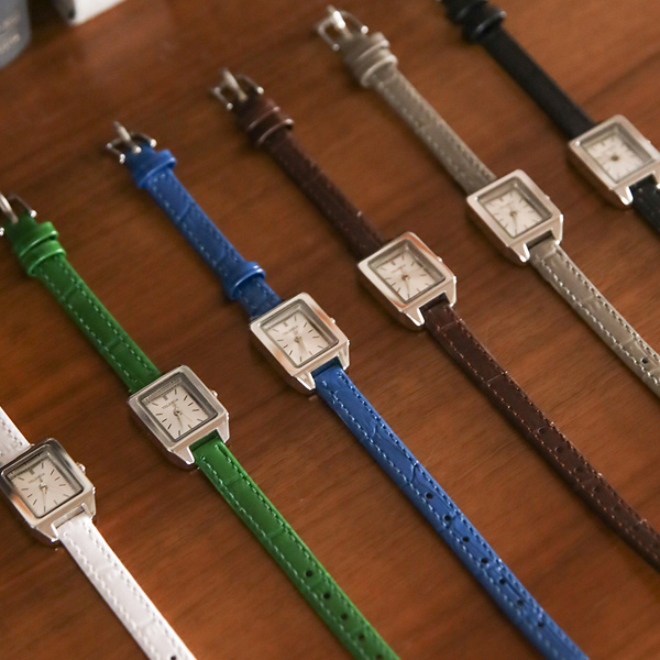 カラフル カーフスキン Silver スクエア フレーム 時計
