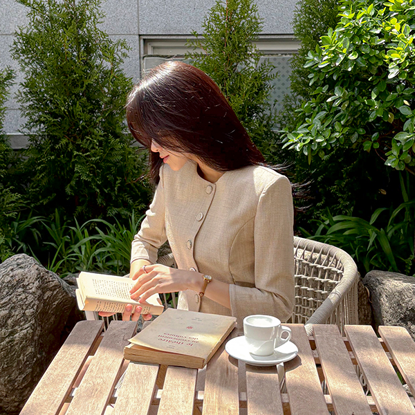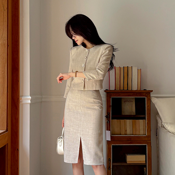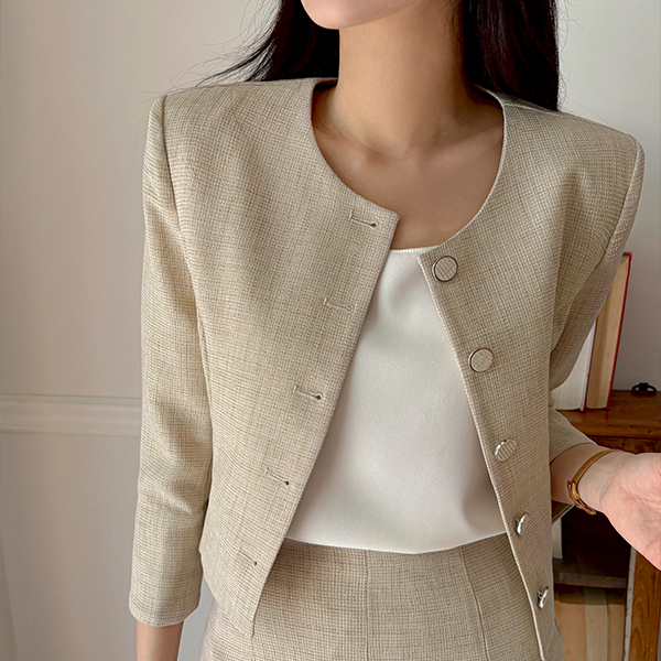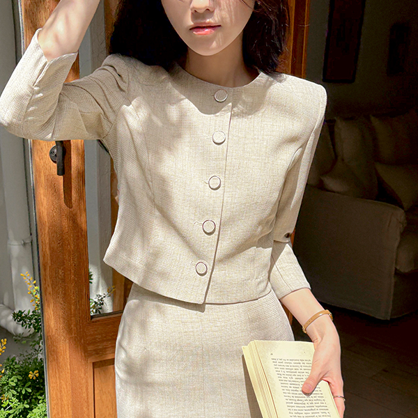 Jane リネン テクスチャ クロップド ジャケット