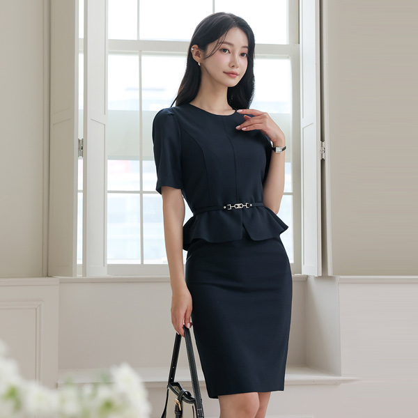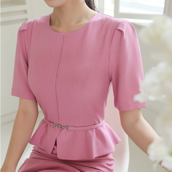 ウェーブライン ゴールドボタン ノーカラー ペプラム 弾力 ジャケット Ⅱ