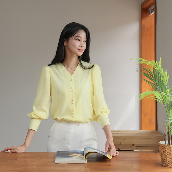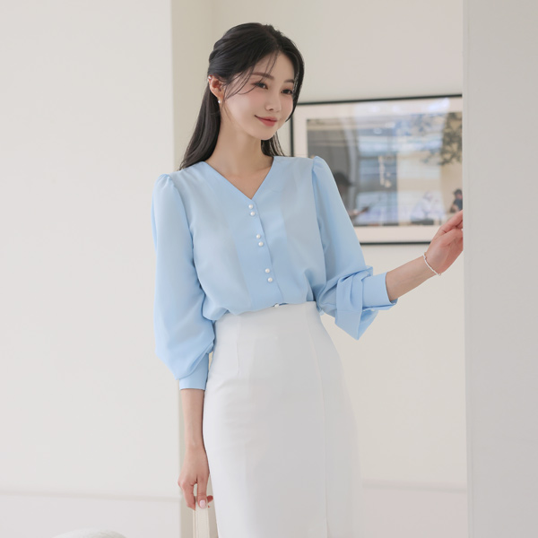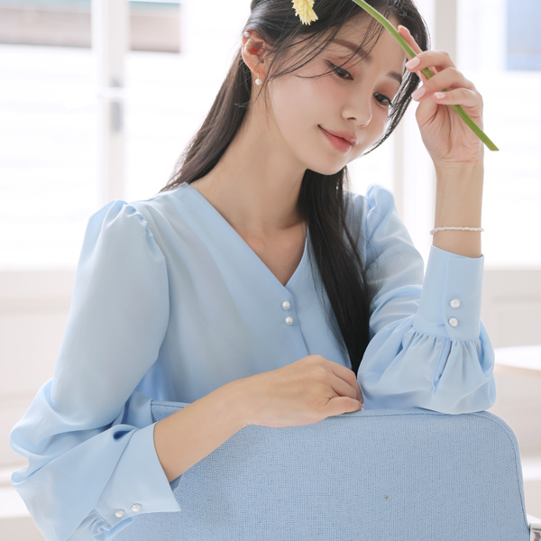 クラウド ダブル 真珠 ボタン ブラウス