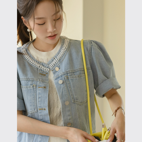 ピュア カラー ラブリー パフ袖 ケーブル コットン ニット