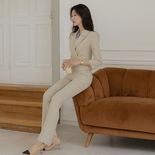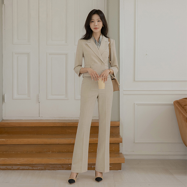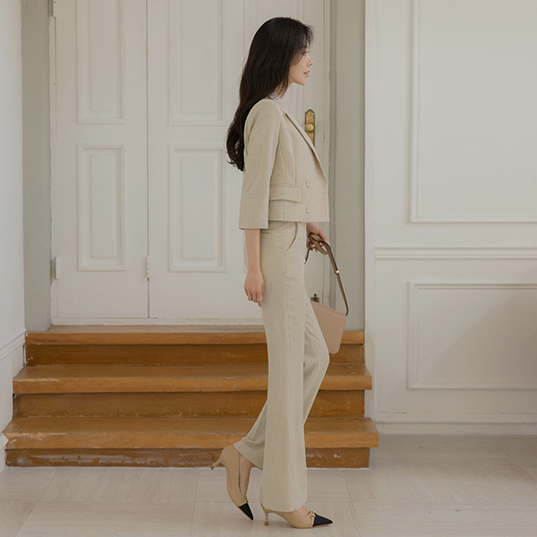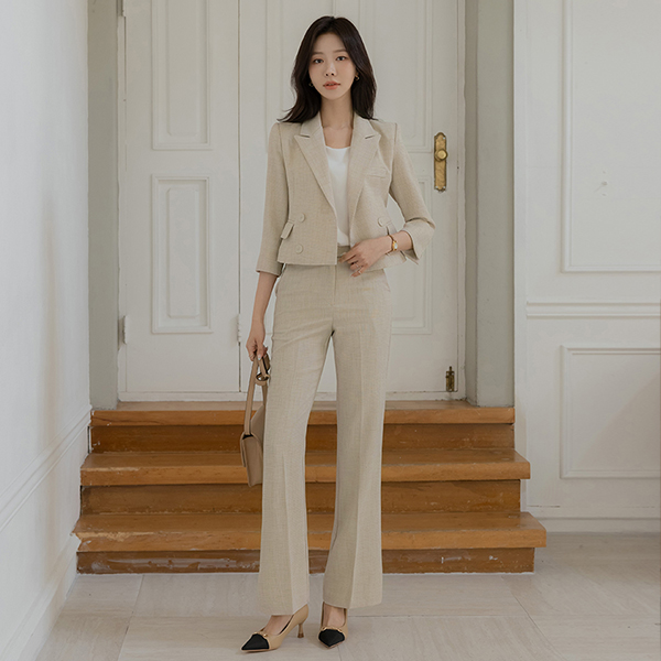 Jane ダブルボタン リネン テクスチャ 弾力 ジャケット