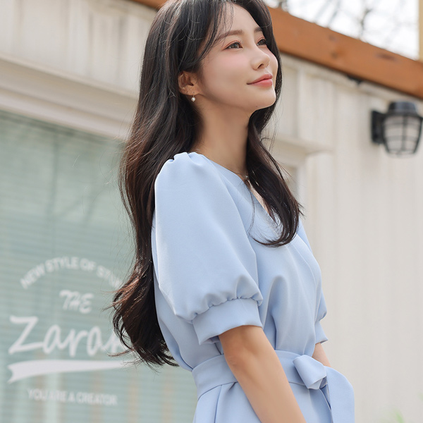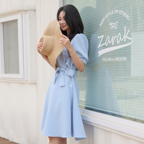 バルーン袖 ラップスタイル フレア ワンピース(半そで)