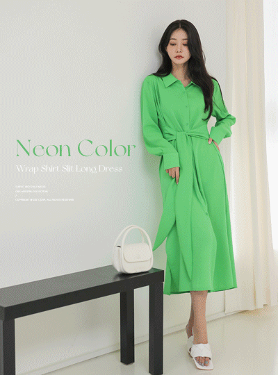 ネオン カラー ラップ シャツ スリット ロング ワンピース