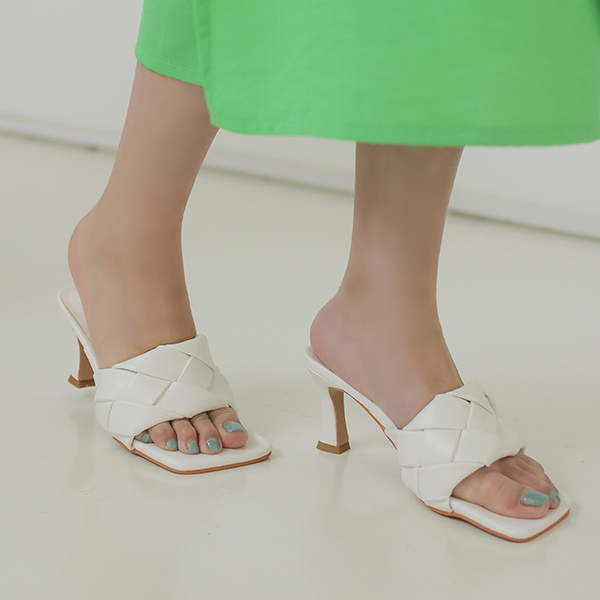 レザー ラタン スリッパ ヒール