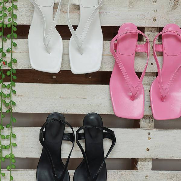スクエアトー ストラップ フリップ・フロップ サンダルヒール
