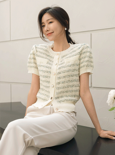Coco 宝石 ボタン ミックス ツイード ニット カーディガン