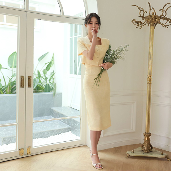 サマー ツイード スクエアネック クロップド ジャケット