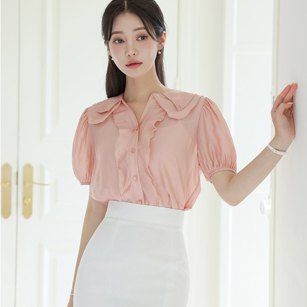 レイヤード カラー きらっと ラッフルライン ブラウス