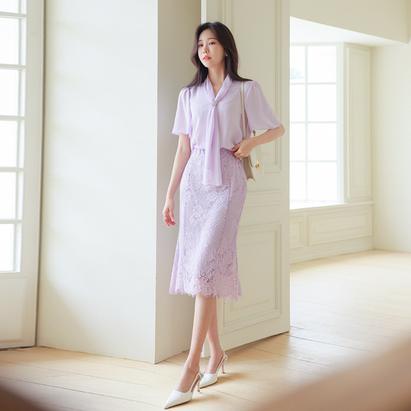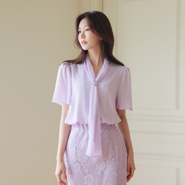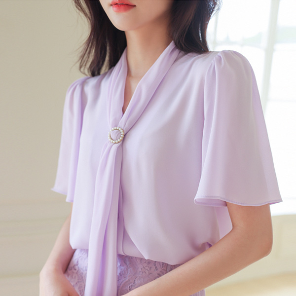エレガンス 真珠輪 スカーフネック 翼 袖 ブラウス