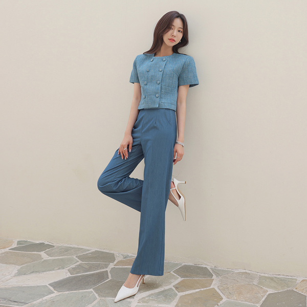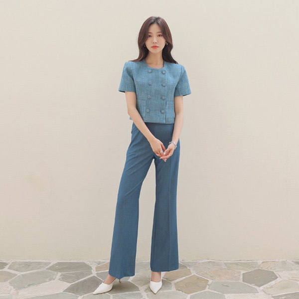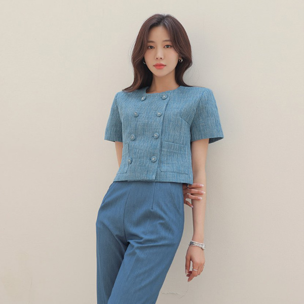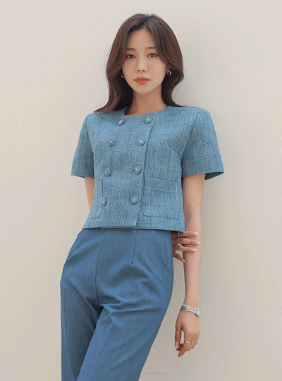 ODE ダブル ボタン ツイード クロップド ジャケット