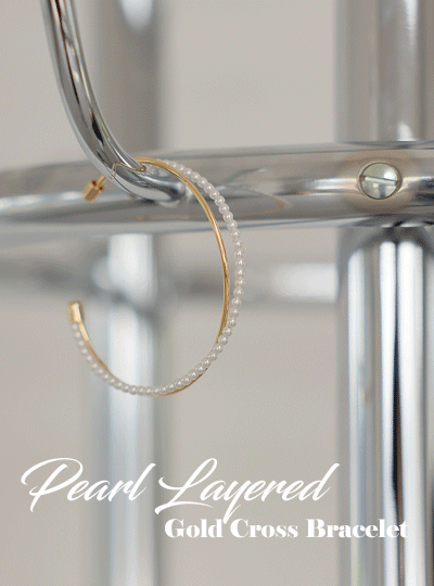 真珠 レイヤード ゴールド クロス ブレスレット
