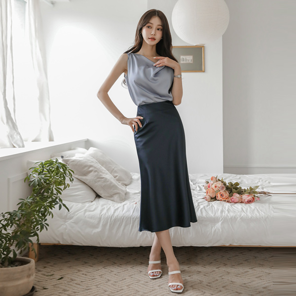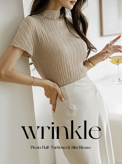 リンクル プリーツ ハーフネック スリム ブラウス