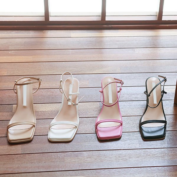 スクエア ストラップ ミドルヒール サンダルヒール