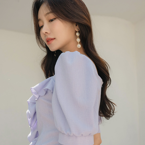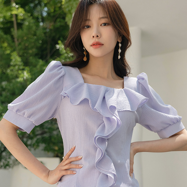 カラー ロマンチック ラッフル パフ リンクル ブラウス