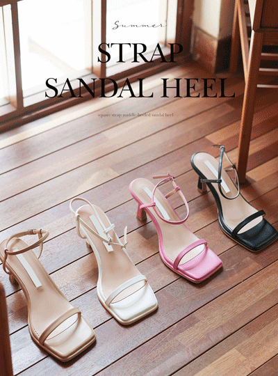 スクエア ストラップ ミドルヒール サンダルヒール