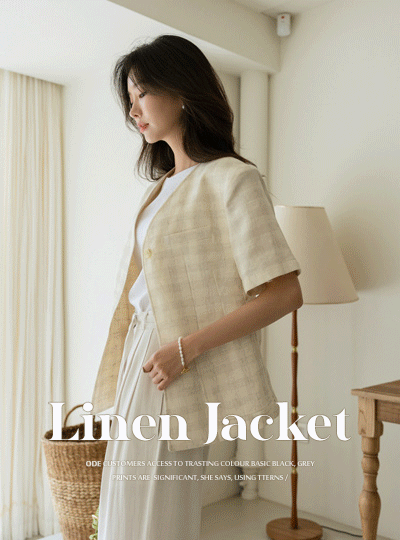 クリーミー チェック パタン 单 ボタン リネン ジャケット