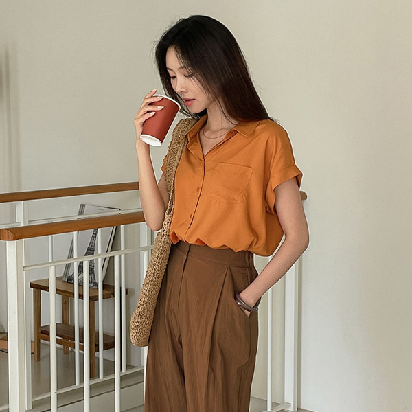 カラー ポイント Soft テンセル ロールアップ シャツ