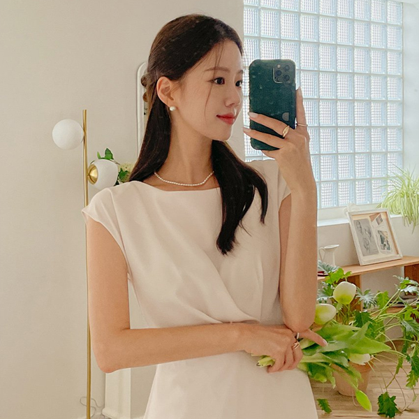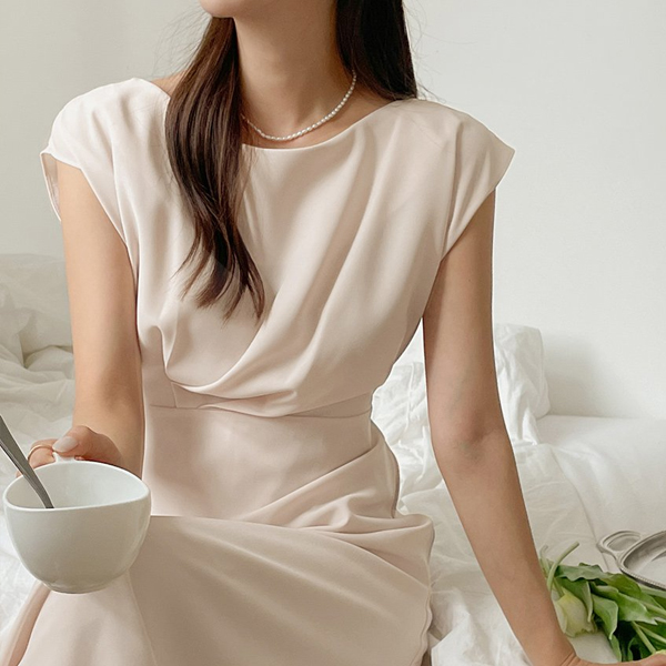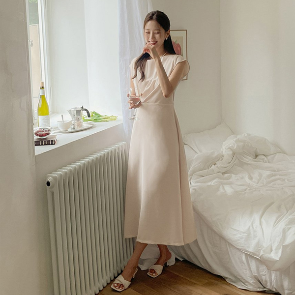 아뜰리에 여리넥 サイド シャーリング ロング ワンピース