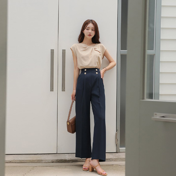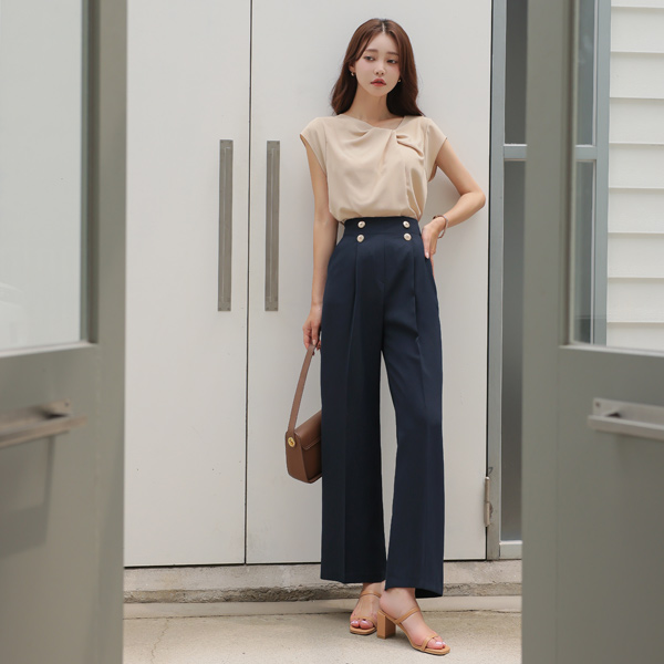 듀엘 ゴールド ダブルボタン ピンタック ワイド スレックス(summer)