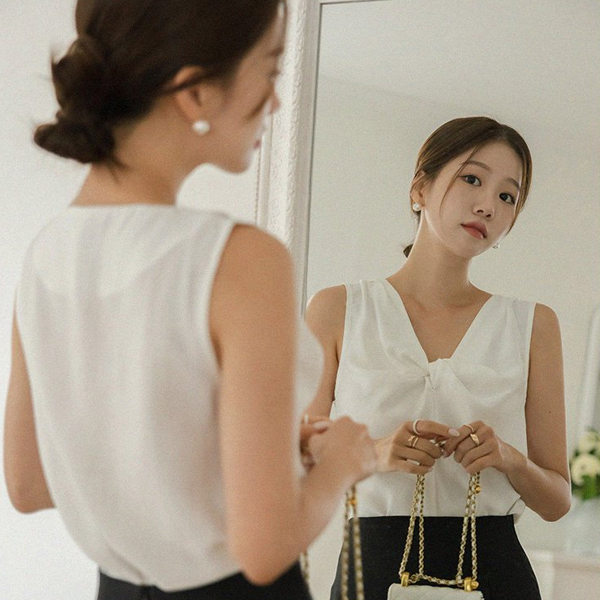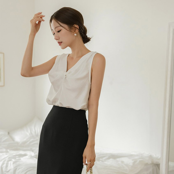 쥴리에타 縒り ディテール グロッシー モダール 袖なし ブラウス