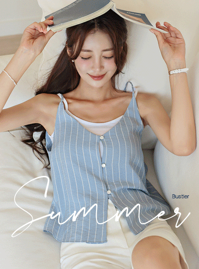 サマー ストライプ ビュスチエ キャップそでなし ブラウス