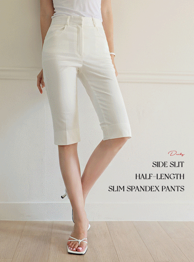 デーリー サイド スリット 5分 スリム 弾力 パンツ