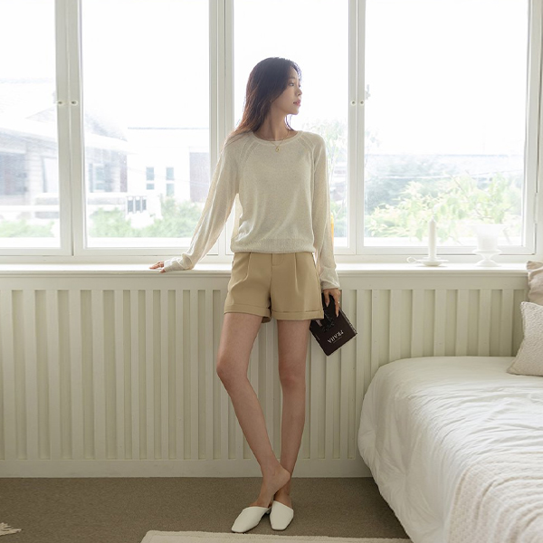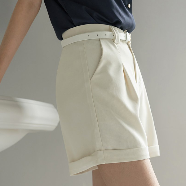 ロールアップ スタイル デーリー ムード ハーフ パンツ (ベルトSET)