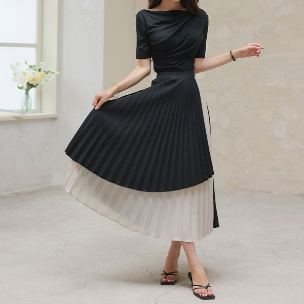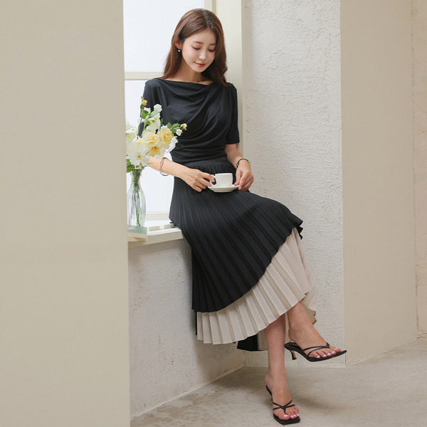 パステル カラー ボートネック シャーリング 弾力 ティーシャツ