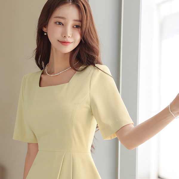Linne スクエアネック アンバランス ペプラム 弾力 ワンピース