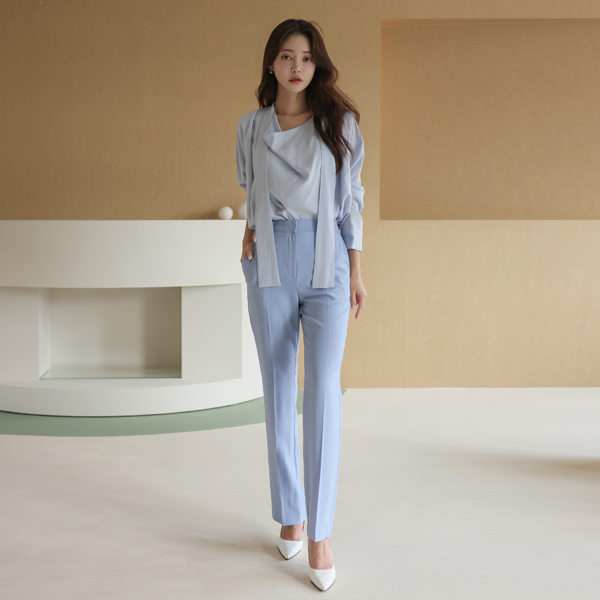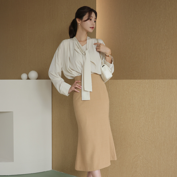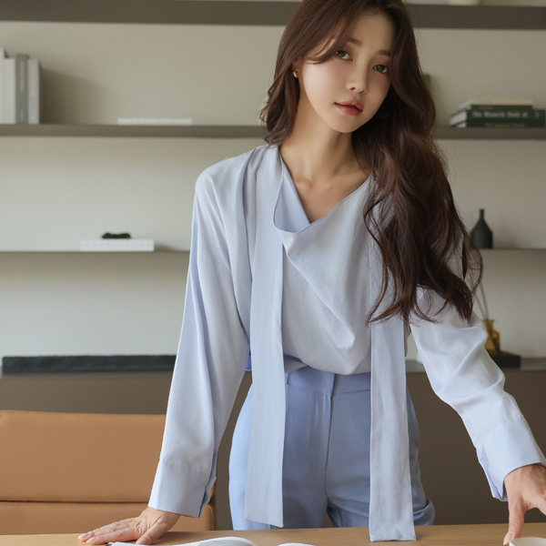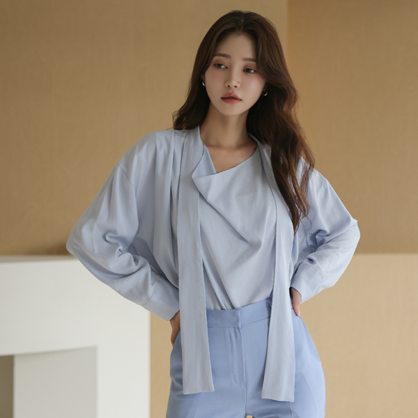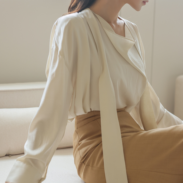 シルキー ドレープ タイネック ブラウス