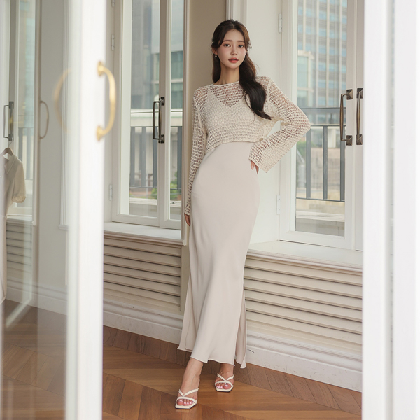 エレガンス ソフト きれいなフィット サイド 切開 スリップ ロング ワンピース