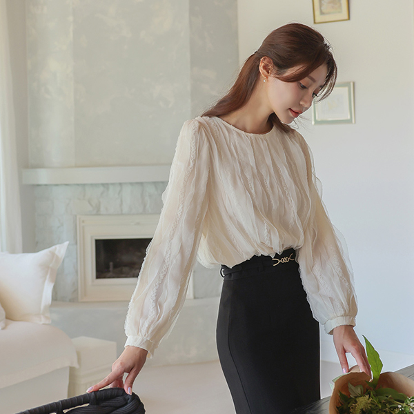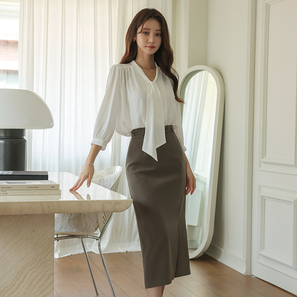 ブイネック ショルダー シャーリング タイ 7分袖 ブラウス