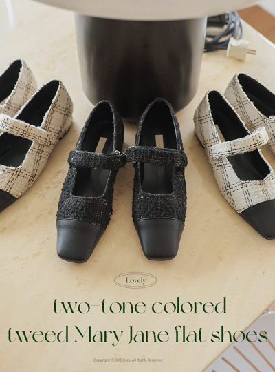 ラブリー ツートーン 配色 ツイード メリージェーン フラット シューズ